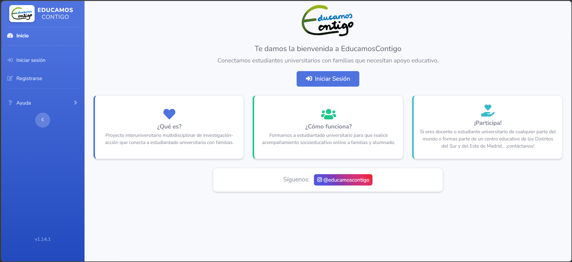 Si es la primera vez que accedes a la plataforma de EducamosContigo, debes registrarte en ella pulsando en Registrarse.